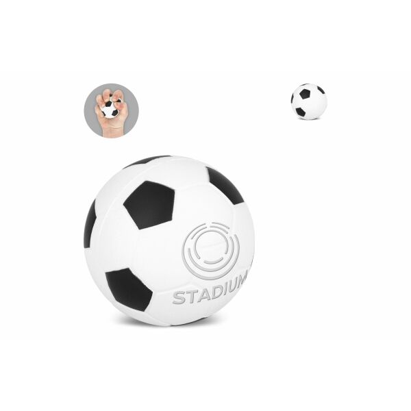Zachte anti-stressbal in voetbalvorm, gemaakt van PU-foam. Ideaal om stress te verminderen, focus te verbeteren of handspieren te trainen. Lichtgewicht en comfortabel in de hand.
